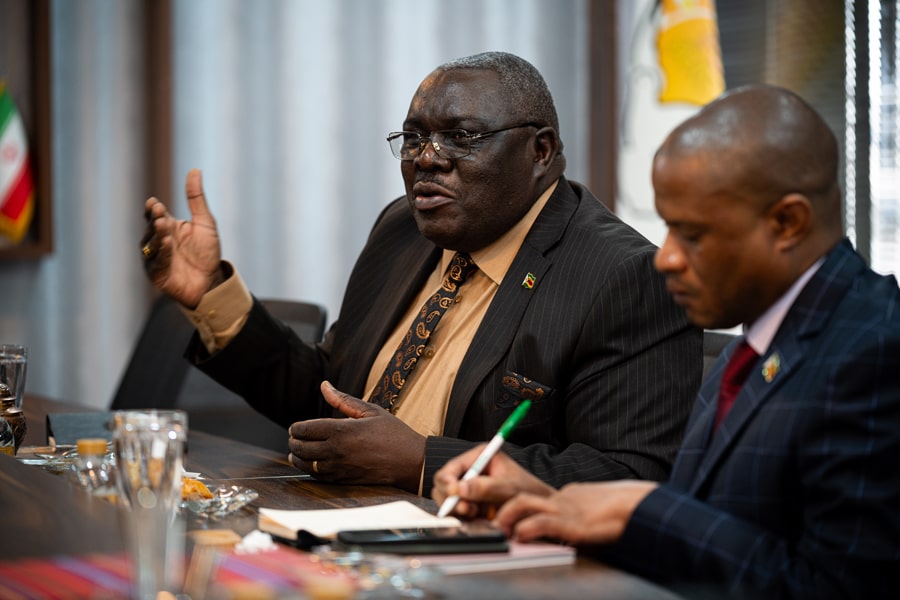 در راستای تقویت همکاریهای دوجانبه، آقای برایت کوپمبا، سفیر زیمبابوه در تهران به همراهی آقای بزک کوانیسایی، رایزن توسعۀ تجارت این سفارت در تاریخ 09/07/1404 در دفتر بنیاد حاضر شدند. در جلسهای که با حضور ایشان و با مشارکت مدیرعامل و کارشناسان بنیاد برگزار شد، راههای همکاری دوجانبه در زمینههای گوناگون، به ویژه تحریمهایی که هر دو کشور با آنها دستوپنجه نرم میکنند، بررسی شد. سفیر زیمبابوه در این جلسه ضمن تشکر از دعوت و میزبانی بنیاد، از استمرار همکاریهای آینده استقبال کرد و از نمایندگان بنیاد دعوت کرد تا برای جلسات آینده، در سفارت زیمبابوه در تهران میزبان آنها باشد.